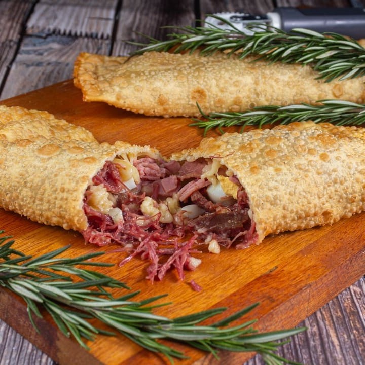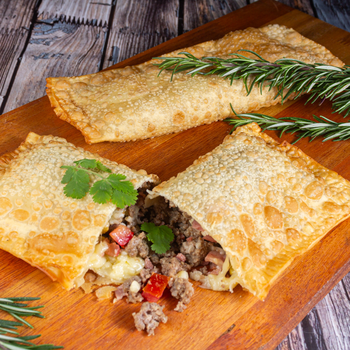 Monte seu pastel de carne seca com 5 complementos de sua preferência.