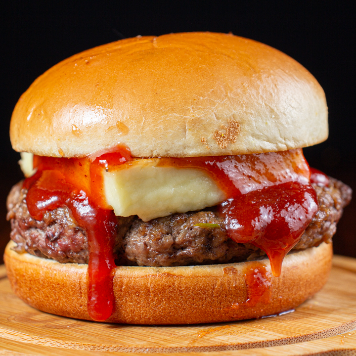 Pão brioche, blend120g, queijo coalho e goiabada derretida.