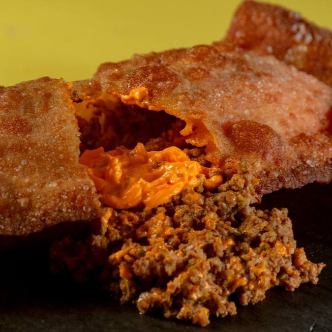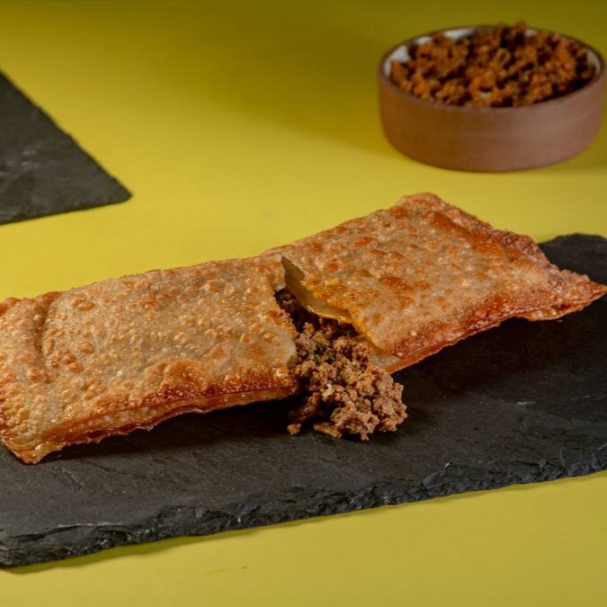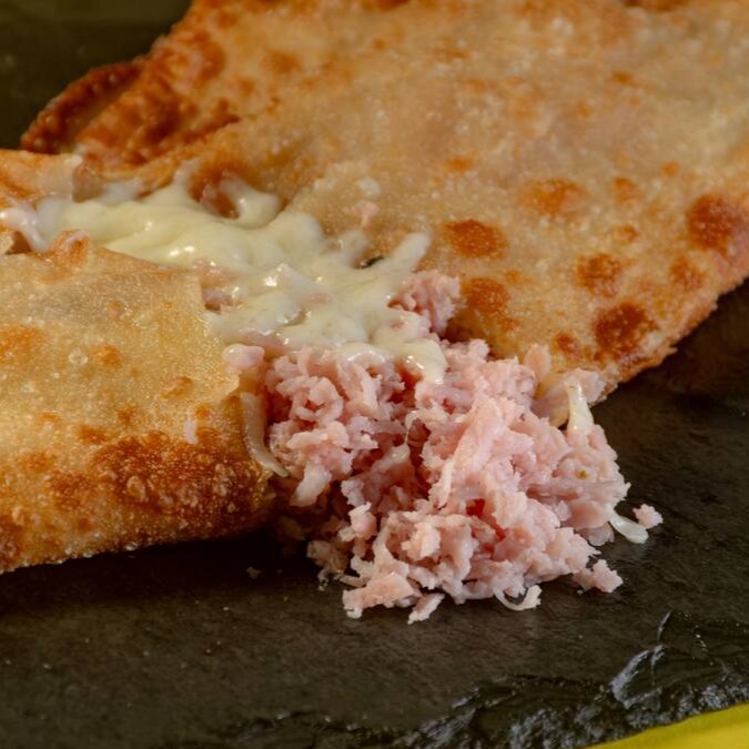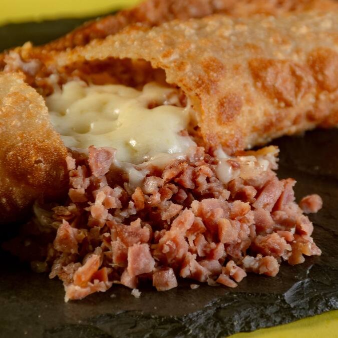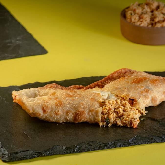 Pastel 22cm com costela bovina desfiada e temperada, finalizada com Catupiry