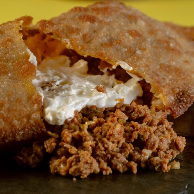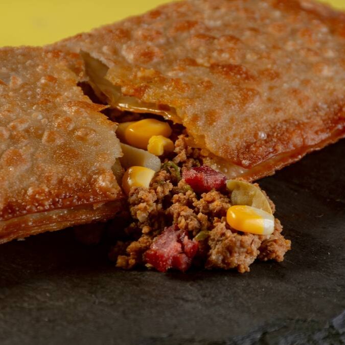 Pastel de 22cm com carne moída bem temperada, bacon crocante, azeitona, milho verde e salsa.