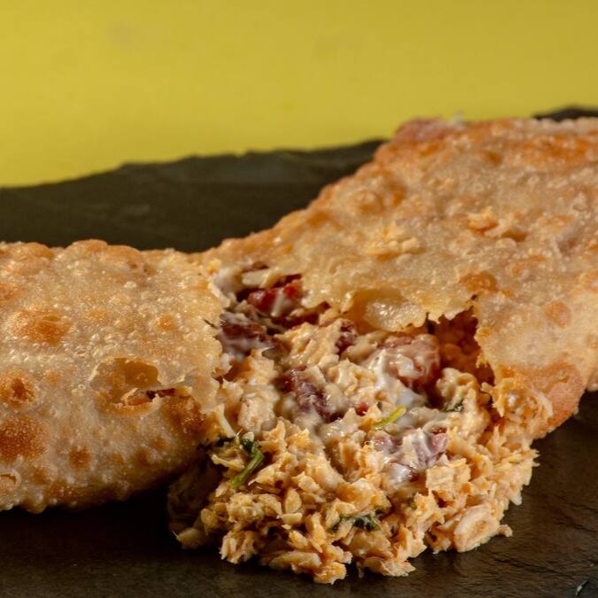Pastel 22cm com carne seca desfiada e finalizada com Catupiry