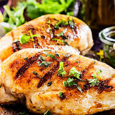 Frango mais molho mais acompanhamentos.