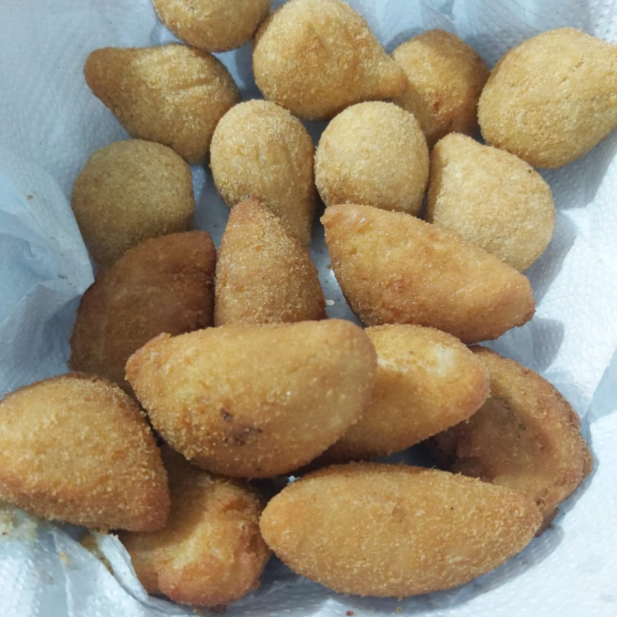 Temos sabores deliciosos 😋 : coxinha, queijo com presunto, camarão e bolinha de queijo.