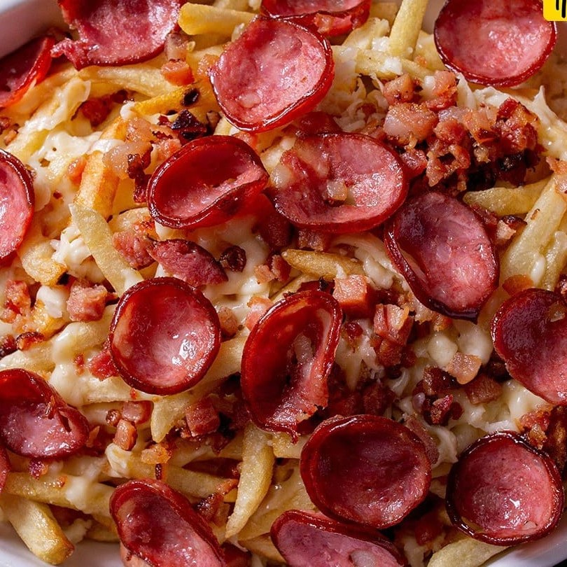Mussarela, calabresa, requeijão, cebola roxa, azeitona e oregano.