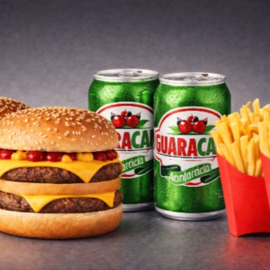 Nesse combo acompanha 2 x tudo tradicionais completos, 1 batata simples p + 2 guarana natural vitta fruit 290 ml ou similar