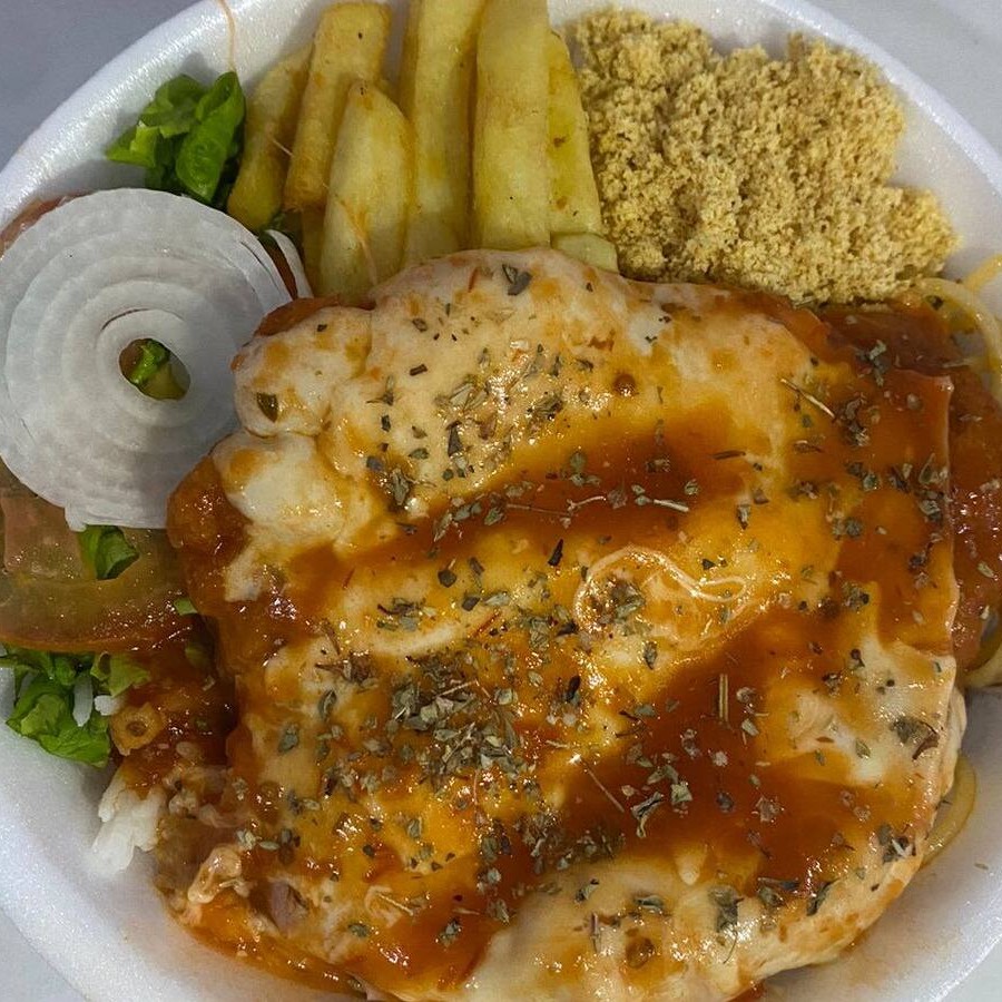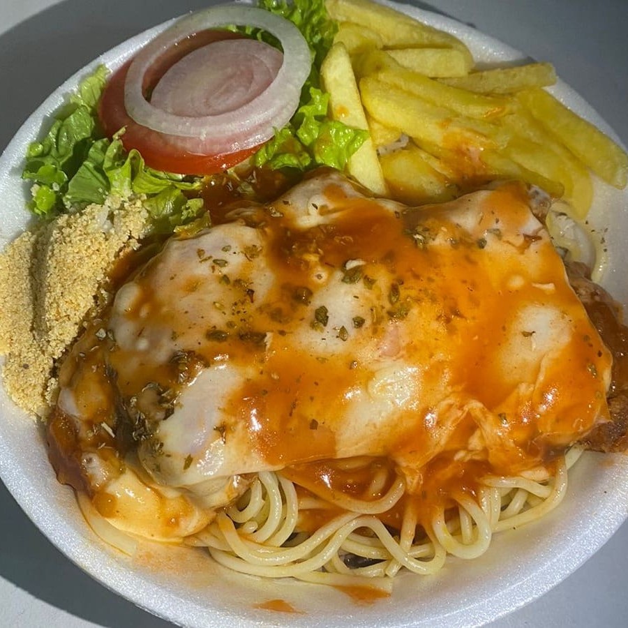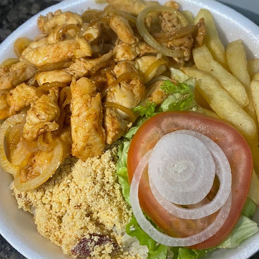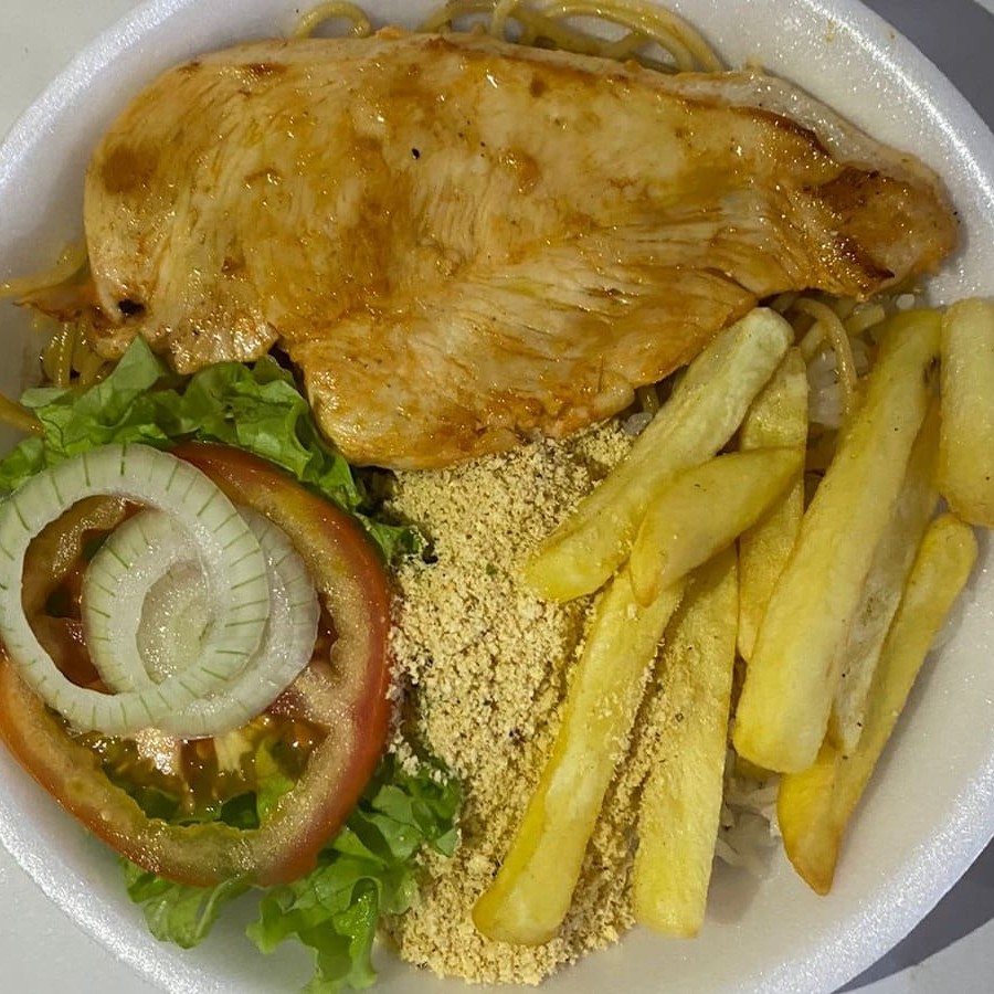 Arroz, Feijão , Macarrão , Farofa , Salada e Fritas.