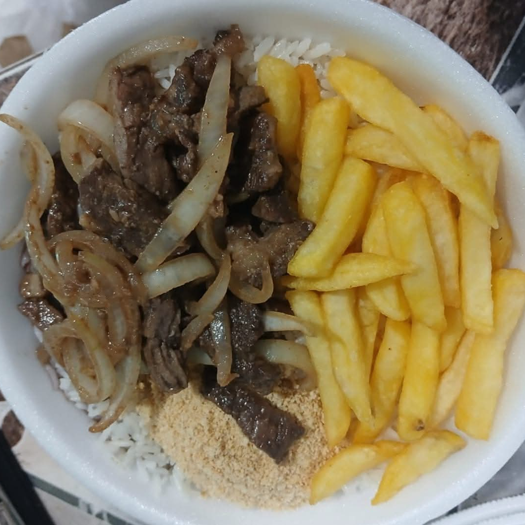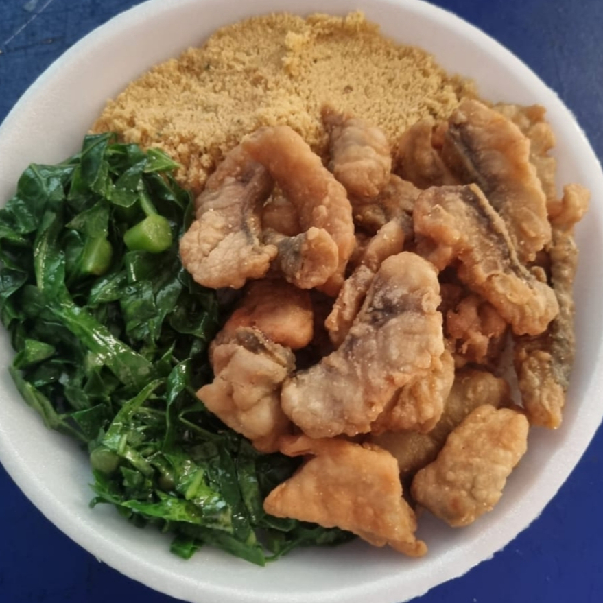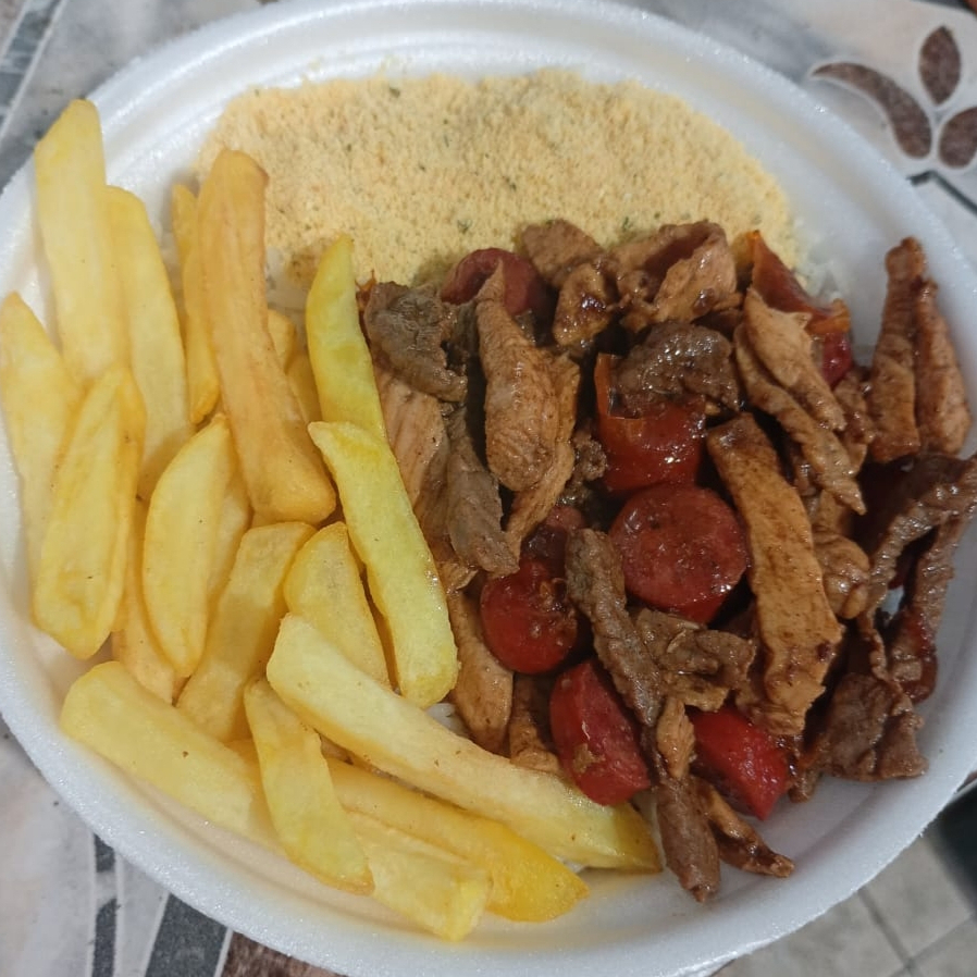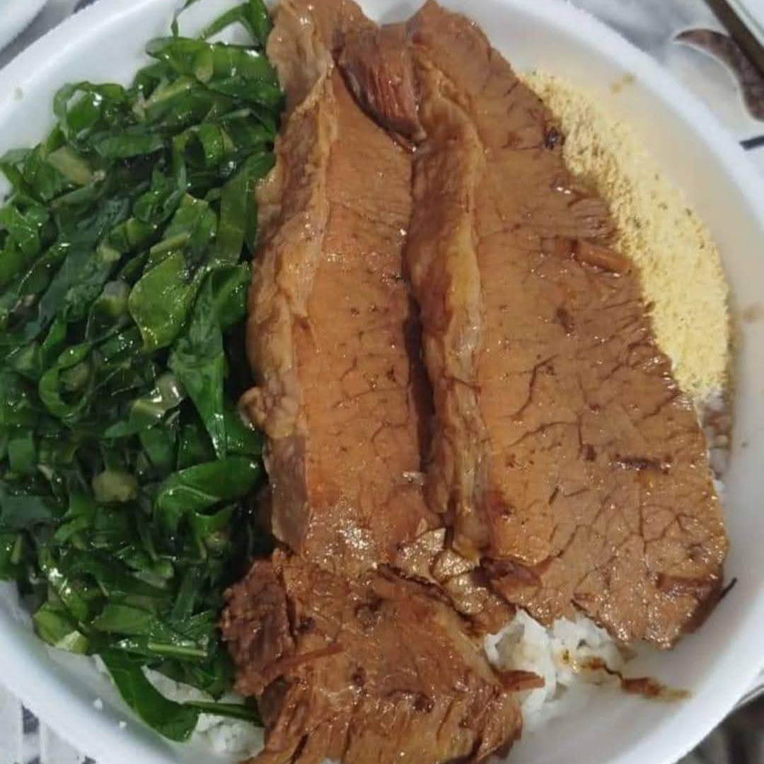 Acompanha; arroz, feijão e farofa. Opção: couve ou batata frita