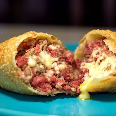 6 unidades de minis pastéis recheado com carne seca e catupiry.