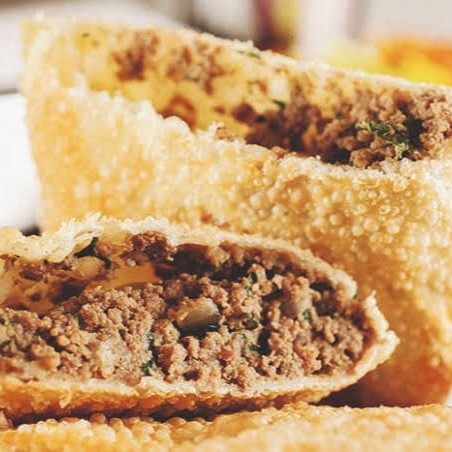 O 'Carne +' é um encanto culinário dos 'Pastéis Do Peteruxo'. Apresenta uma suculenta carne moída, cuidadosamente temperada para realçar o sabor. Acompanha finas fatias de calabresa, que conferem um toque defumado ao pastel, e pequenos cubos de bacon crocantes que adicionam uma textura única. O ovo de codorna, finamente picado, harmoniza perfeitamente com as azeitonas verdes fatiadas, proporcionando um contraste de sabores marcante. A cebola roxa picadinha acrescenta uma suavidade adocicada, enquanto o alho frito finaliza o prato com um toque crocante e aromático. Uma verdadeira delícia!