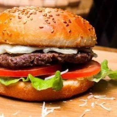 Hamburguer de picanha, alface, tomate, queijo muçarela. Acompanha batata frita.
