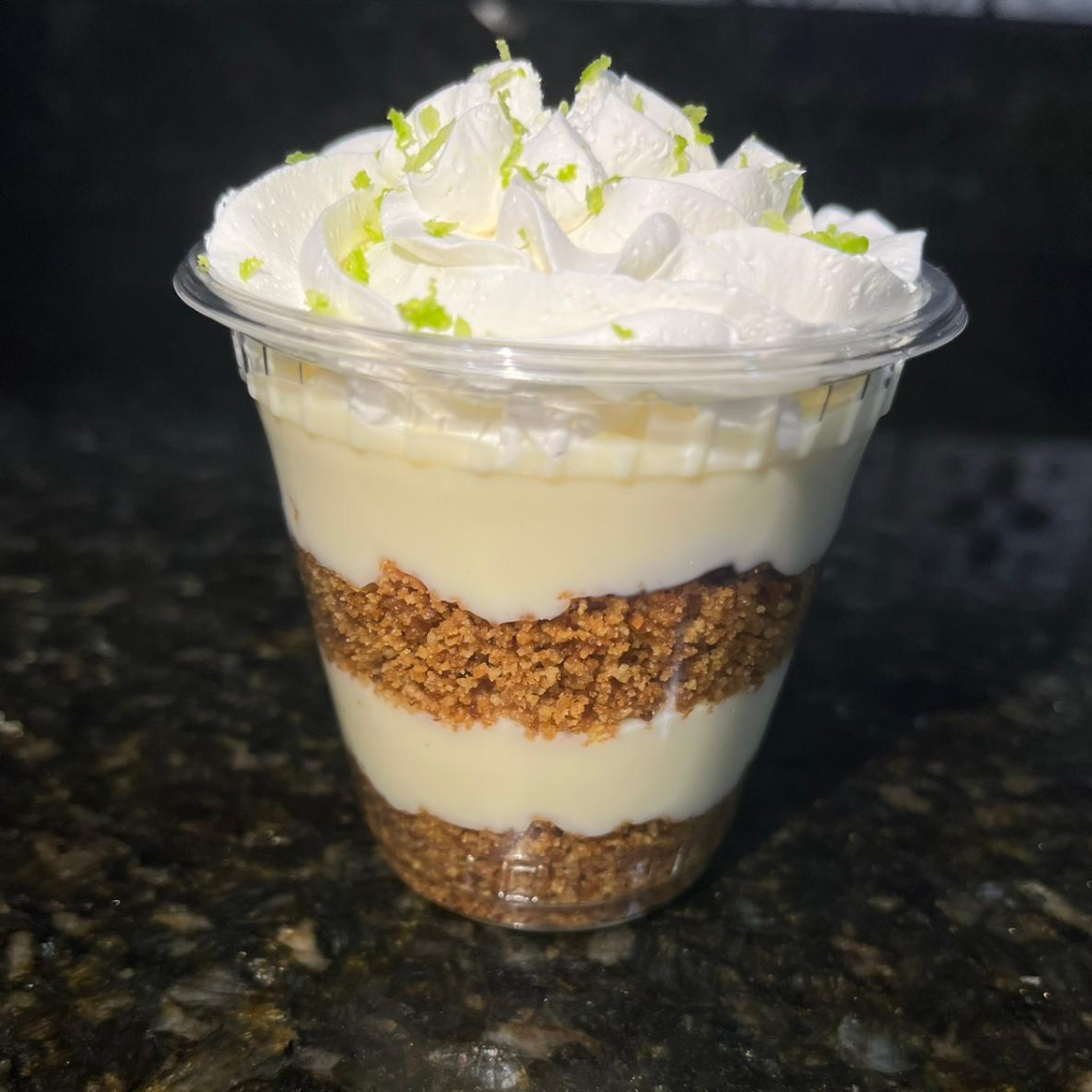 Farofinha de biscoito maizena intercalado com nosso mousse de limão, finalizado com chantilly e raspas de limão.