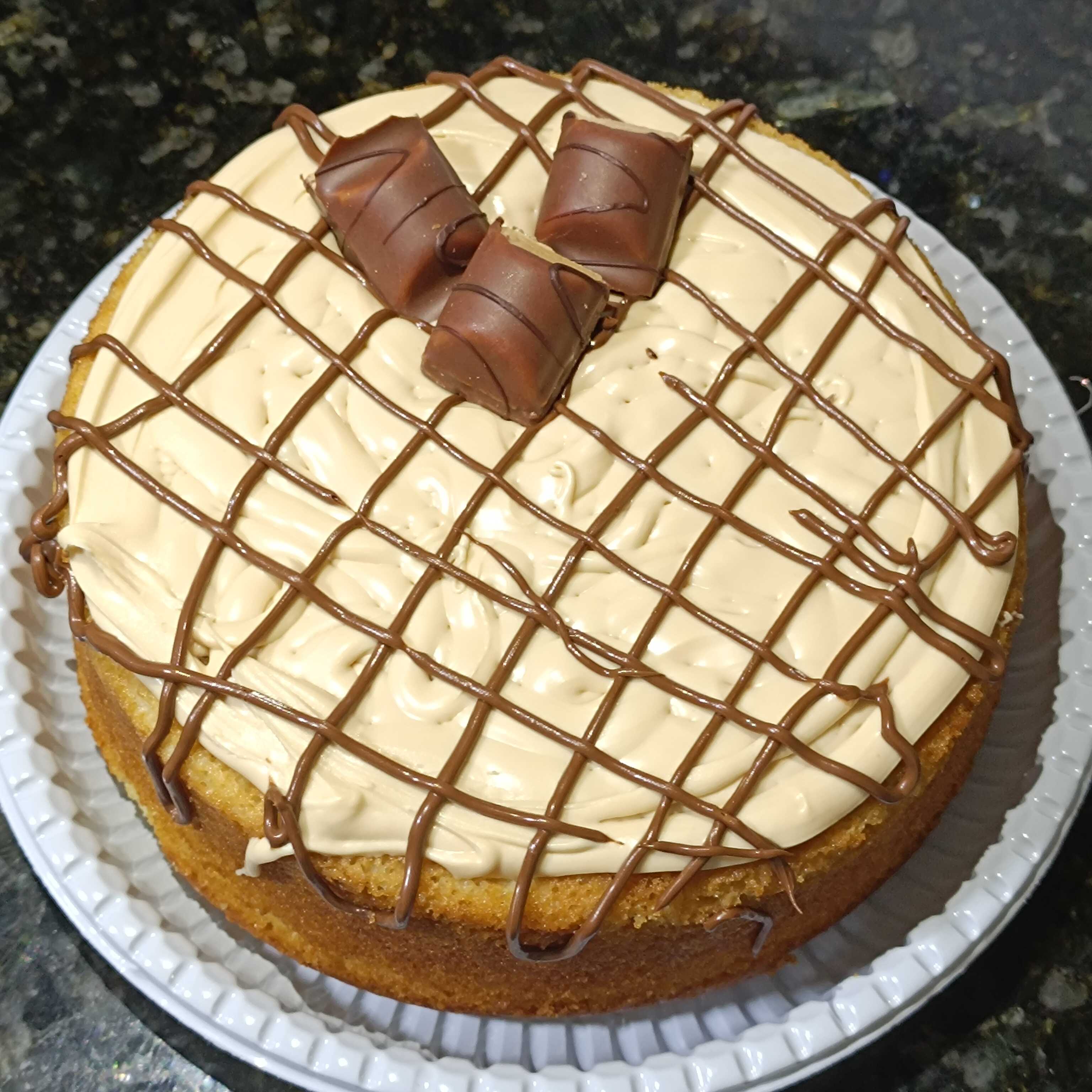Massa de baunilha, com generosas camadas de creme de churros e finalizado com uma excelente camada de doce de leite.