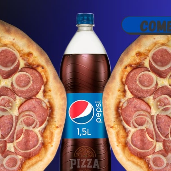 Curta 2 pizzas Família (35 cm), cada uma com até 2 sabores clássicos à sua escolha — são 8 fatias generosas por pizza, perfeitas para compartilhar! Para acompanhar, um refrigerante geladinho que completa essa refeição perfeita para a família