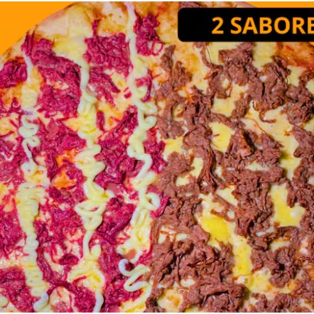 Pizza tamanho 35cm, ideal para dividir! 1/2 quatro queijos super cremosa (mussarela, provolone, parmesão e catupiry) + 1/2 calabresa fatiada com catupiry, sem cebola.