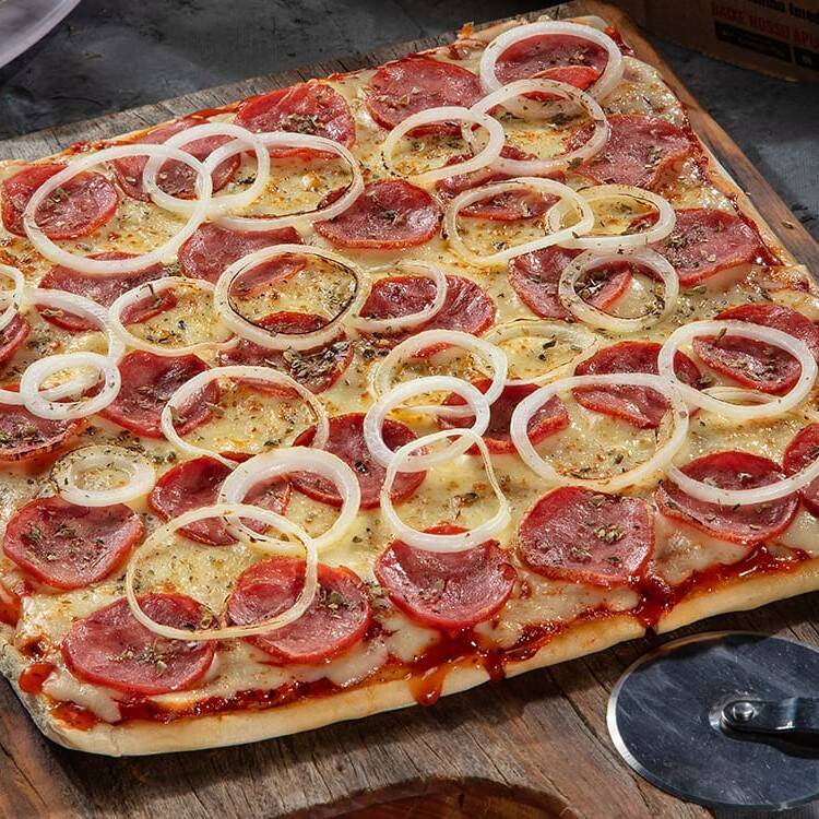Escolha o sabor que mais combina com você entre nossas opções disponíveis de Pizza Grande (38cm X 25cm). Preparada na hora com massa artesanal, molho de tomate especial e ingredientes de primeira. Aproveite!