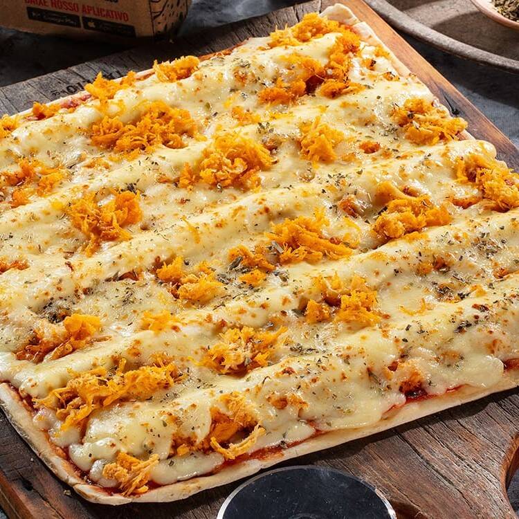 Escolha o sabor que mais combina com você entre nossas opções disponíveis de Pizza Grande (38cm X 25cm). Preparada na hora com massa artesanal e ingredientes de primeira. Aproveite!