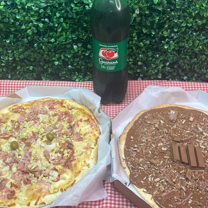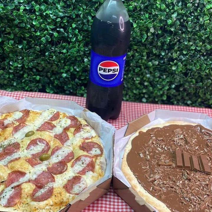 Desfrute de uma saborosa pizza de 30 cm, caprichosamente recheada, perfeitamente complementada por um refrigerante revigorante de 1,5 litros, ideal para aplacar a sua sede. O combo não para por aí, ele também traz um irresistível brotinho doce de 20 cm, o gran finale perfeito para a sua refeição, adicionando uma pitada de doçura. Tudo meticulosamente planejado para oferecer a você uma experiência