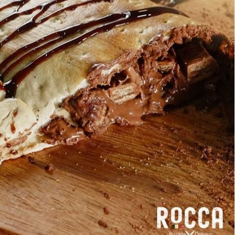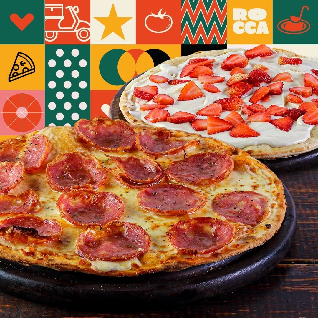 Gigante (40cm) de Qualquer Sabor + Doce (25cm)', uma escolha favorita entre os Roccalovers! Esta magnífica e generosa pizza gigante permite-lhe escolher até dois sabores distintos, proporcionando uma experiência de paladar variada e emocionante. Além disso, para adicionar um toque final perfeito à sua refeição, oferecemos uma pizza doce individual, com um único sabor à sua escolha, que irá satisfazer os seus desejos mais doces. Prepare-se para uma festa inesquecível de sabores!