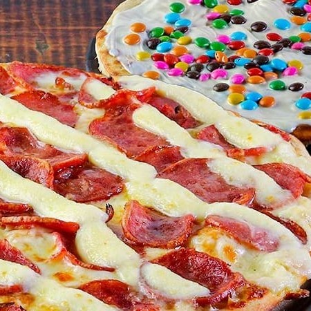 Um combo pensado para quem não abre mão da sobremesa. Inclui uma pizza salgada gigante com molho de tomate, muçarela e o sabor da sua preferência, e uma pizza doce de 25 cm para adoçar a refeição. Ideal para compartilhar, experimentar sabores diferentes ou encerrar o pedido com um toque doce. Escolha seus sabores e aproveite esse combo completo.