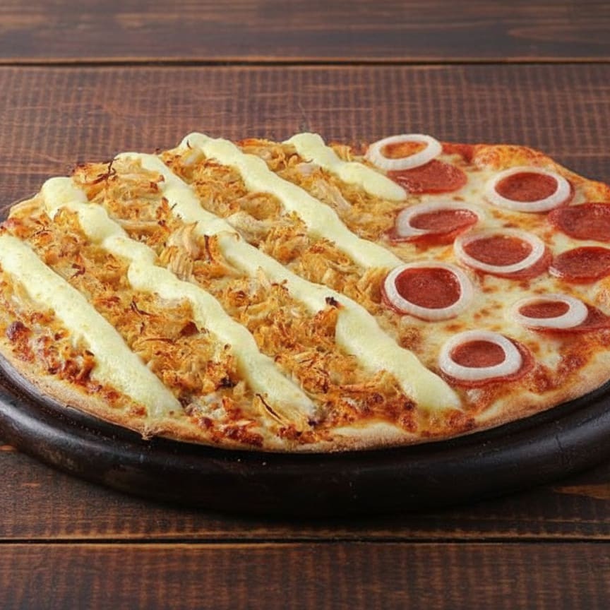 Pizza Gigante Meio A Meio 40cm - Frango Com Catupiry Calabresa - 40 Cm