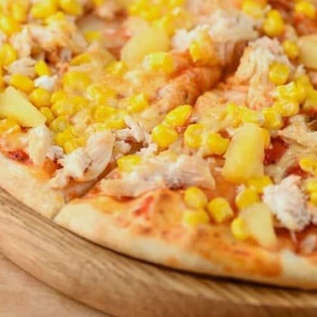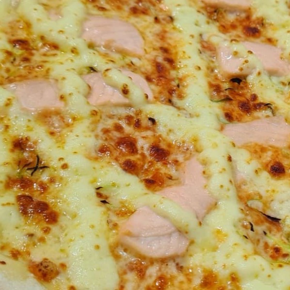 Nossa irresistível 'Pizza de Frango com Milho - 40 cm' é uma delícia da categoria 'Pizza Salgada Grande 40 cm'. Cada pedaço é uma experiência única, começando com uma generosa camada de nosso autêntico molho de tomate. Em seguida, adicionamos uma porção generosa de mussarela derretida, que se estende em longos fios a cada mordida. Cobrimos com pedaços de frango suculentos e bem temperados e, como
