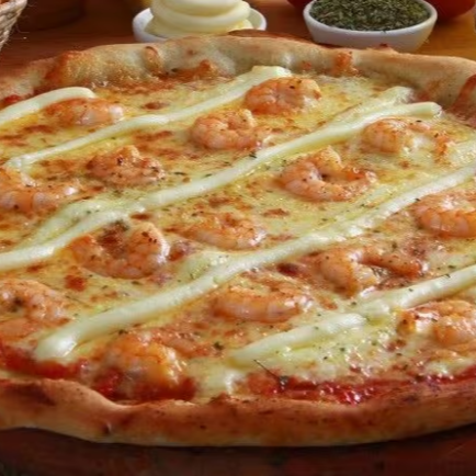 Mussarela, camarão e Catupiry Serve 2 pessoas
