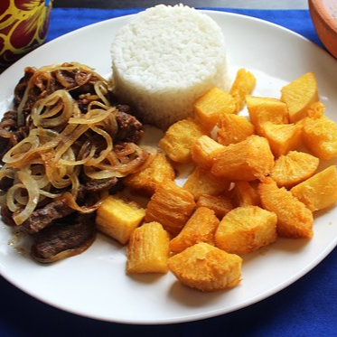 Arroz branco, feijão preto, farofa, salada verde, batata frita ou maionese.