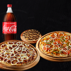 Combo Tamanho Família: 2 Pizzas Gigantes (45cm) + 1 Refrigerante + 1 Pizza Brotão Doce (25cm). *Sabores Camarão, Carne Seca e Lasanha terão acréscimo no valor.