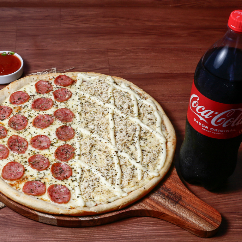 Escolha até 2 sabores selecionados de Pizza Grande 35cm (até 2 sabores) + Refri 2l , combo por somente R$79,90