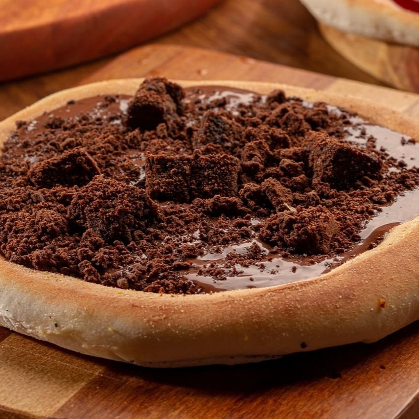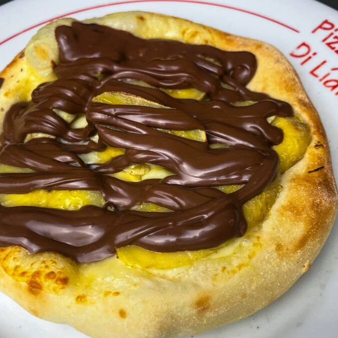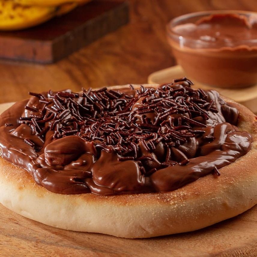 Muçarela, chocolate branco, coco e chocolate ao leite.