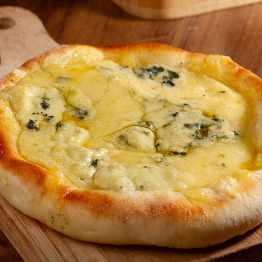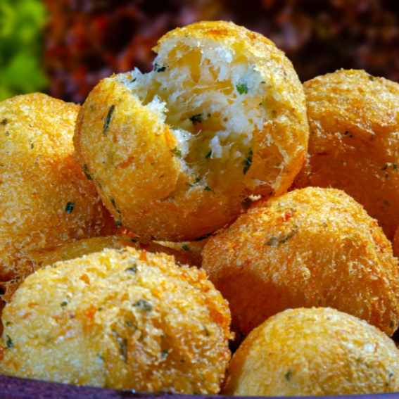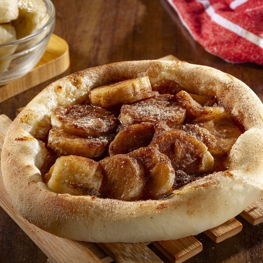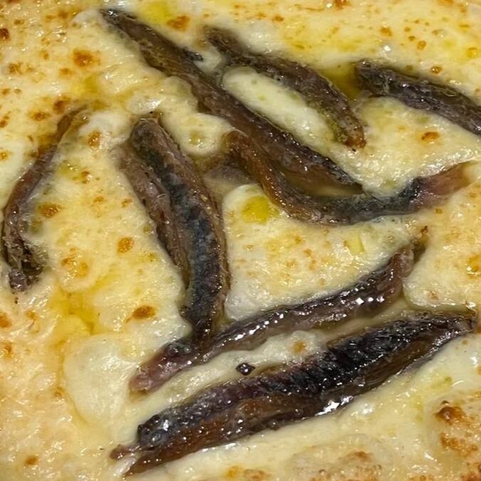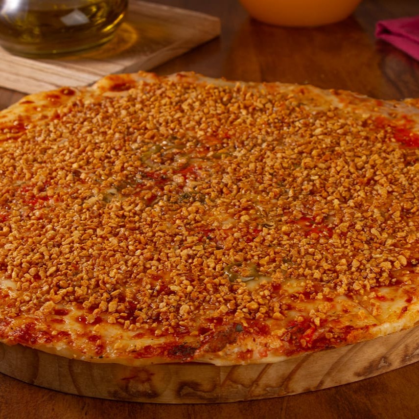 Camarão, mussarela, Catupiry, bacon e abacaxi.