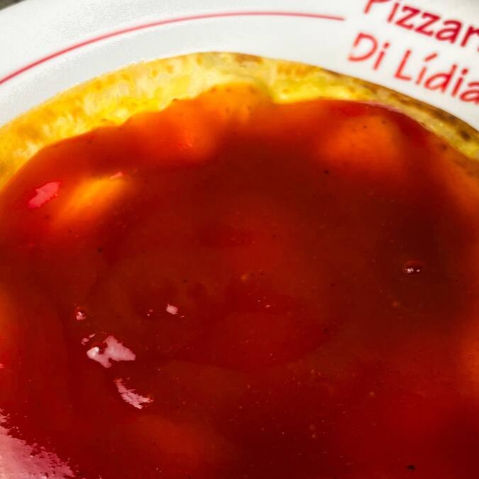 Muçarela de búfala, peito de peru, ricota e tomate.