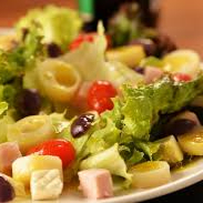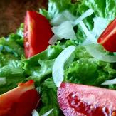 Alface, rúcula, palmito, tomate, presunto, queijo, ervilha, azeitona e cebola.