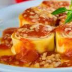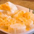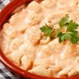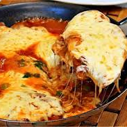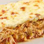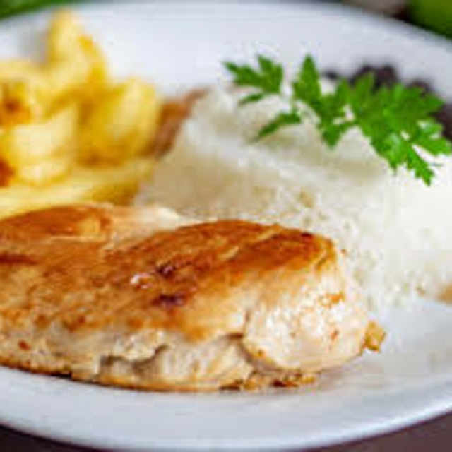 Filé de frango com presunto, queijo e molho sugo, arroz e purê de batatas.