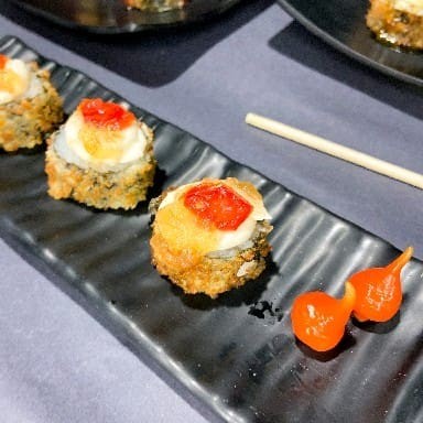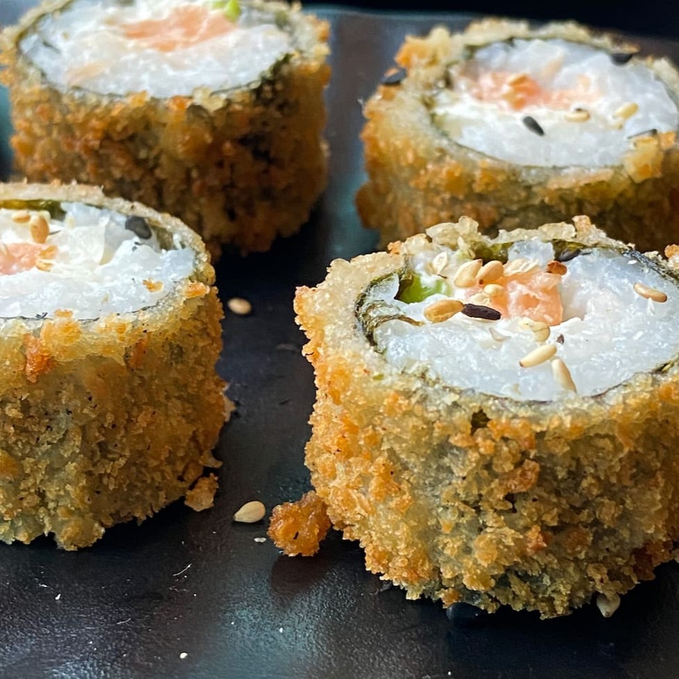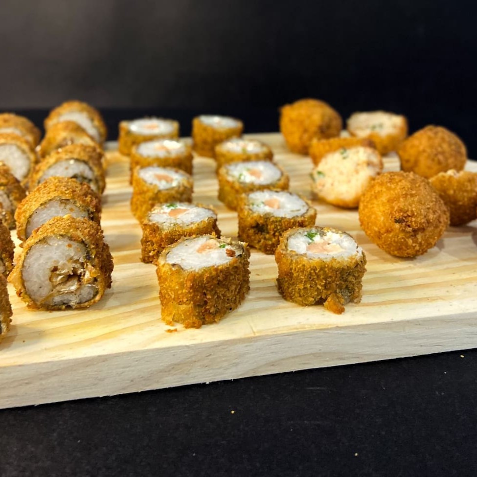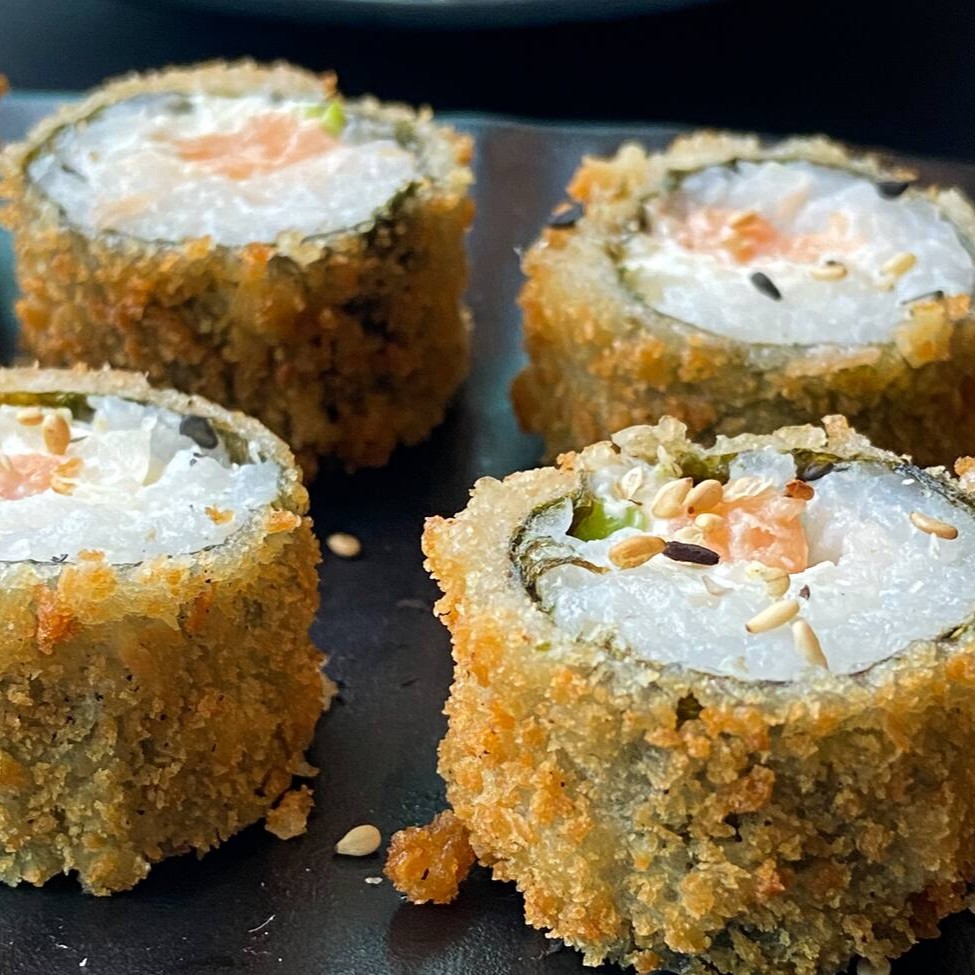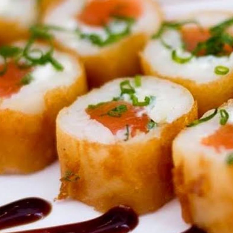 O 'Haru Hot' é uma preciosidade da culinária japonesa. Trata-se de um hot roll primorosamente recheado com salmão fresco, arroz suavemente temperado, cremoso cream cheese e um toque de cebolinha, todos envoltos em uma delicada massa de harumaki, conhecida como 'rolinho primavera'. O resultado é uma iguaria irresistível, que se destaca pela casquinha extremamente crocante, que contrasta de maneira perfeita com o recheio incrivelmente leve e macio. Uma verdadeira festa de texturas e sabores que promete encantar todos os paladares!