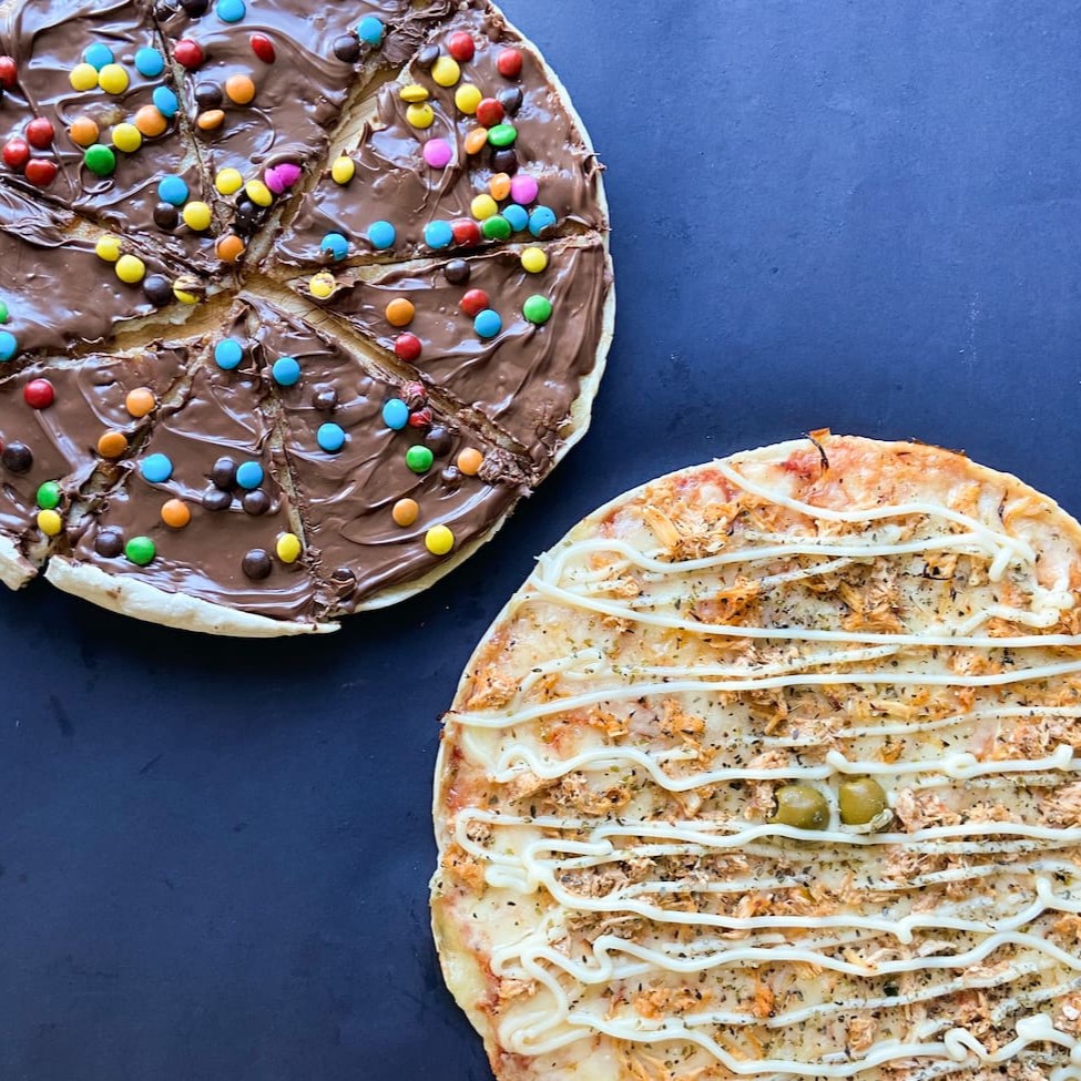 Pizza média 30 cm + pizza brotão doce + Coca cola 600 ml.