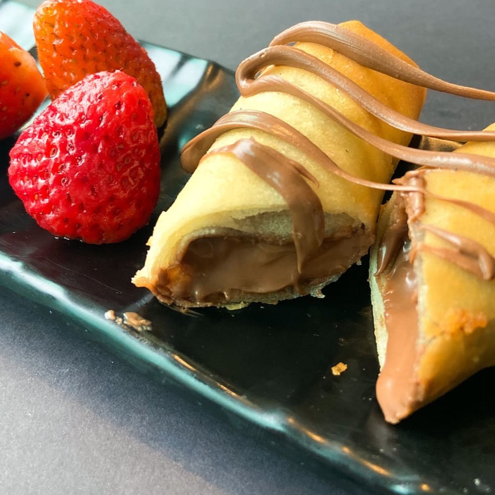 Descubra o prazer de saborear nosso Harumaki de Chocolate com Morango, orgulhosamente apresentado como o 'Especial do Dia'. Envolto na delicada e crocante massa de Harumaki, encontra-se o chocolate fracionado, meticulosamente selecionado e derretido até a perfeição, que se une harmoniosamente aos morangos frescos e suculentos. Este deleite é um verdadeiro casamento de sabores que promete conquistar seu paladar e proporcionar uma experiência gastronômica inigualável.