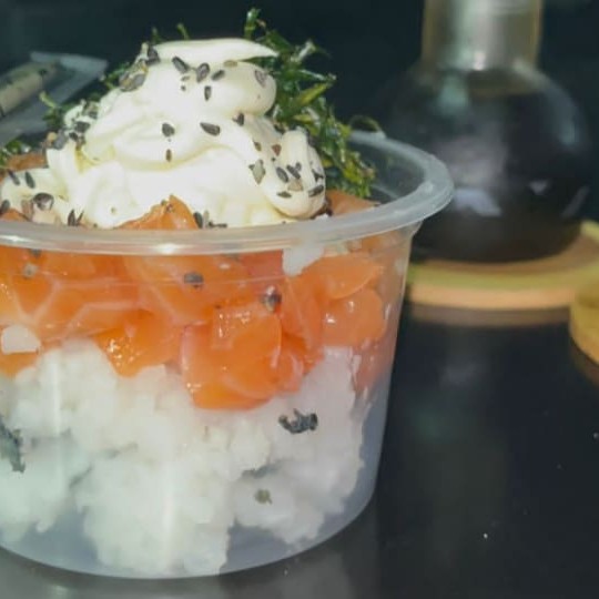 Revelando o 'Especial do Dia', temos um prato de 400g que exala requinte e sofisticação. Composto por arroz meticulosamente escolhido, salmão fresco e suculento, que se funde harmoniosamente com um sedutor cream cheese. O toque verde fica por conta da cebolinha, adicionando um sabor levemente picante, que é equilibrado com a doçura exótica da manga. O gergelim e o crispy trazem uma textura crocante, enquanto a cebola roxa traz um toque adocicado e vibrante para este prato. Uma delícia a ser degustada!