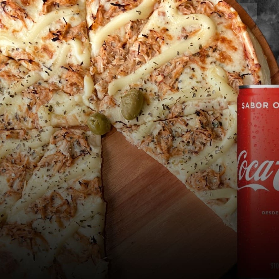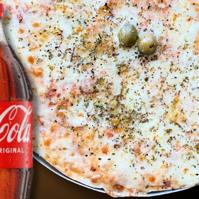 Deliciosa pizza de 40 cm, generosamente coberta com uma camada de suculenta mussarela derretida. Acompanhada de um saboroso molho de tomate caseiro, azeitonas frescas e um toque de orégano para realçar o sabor. O prato é complementado com uma refrescante Coca Cola de 2 litros, perfeitamente gelada. Uma combinação irresistível que faz parte da nossa promoção especial.