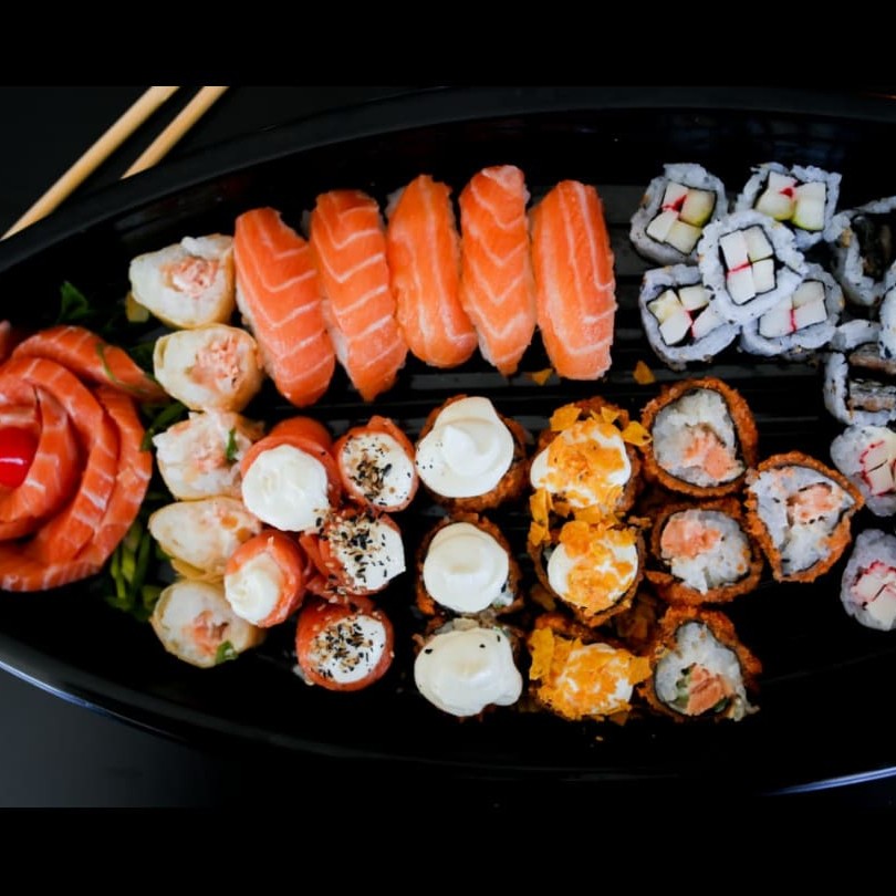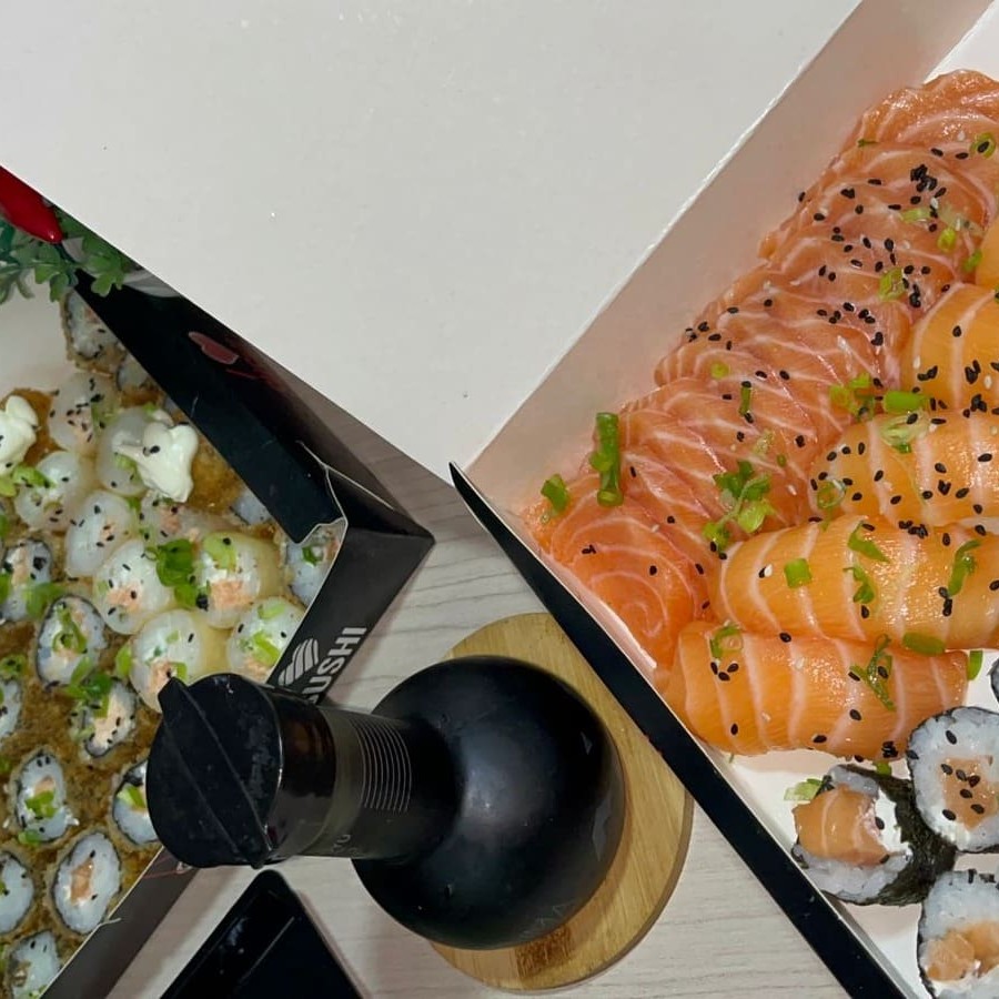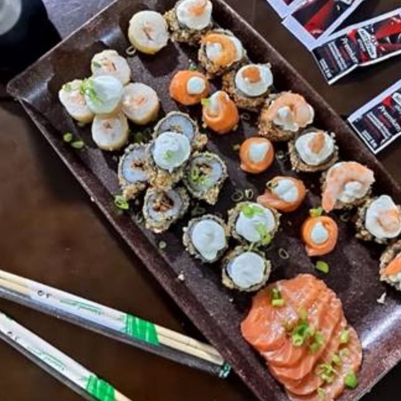 10 Sashimis de salmão 10 Hot Philadelphia 05 Sushis 05 Califórnia 05 Skin Uramaki 05 Joy 05 Haru hot 05 kanimaki