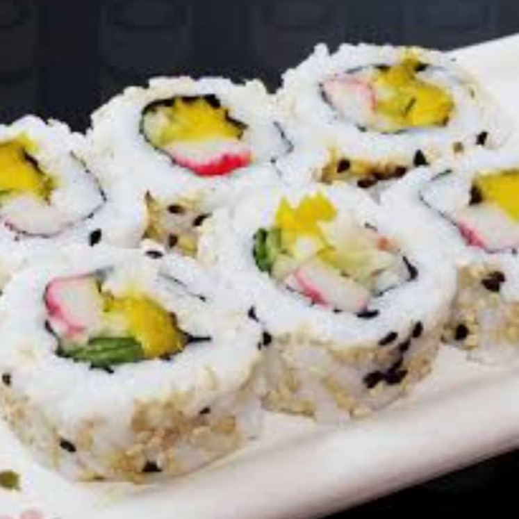 O Sushi Califórnia, um clássico da culinária japonesa, é cuidadosamente confeccionado com manga fresca, pepino crocante e kani suculento. A receita seguida é fruto de um workshop com o renomado sushiman Juca. Nessa versão especial, todas as peças foram primorosamente preparadas pela talentosa filha do sushiman. Com o arroz japonês já cozido e adequadamente temperado com um delicioso molho para sushi previamente aquecido e o recheio finamente cortado, a alga nori é cortada ao meio para dar forma ao sushi. É uma verdadeira obra de arte culinária que celebra a tradição e o sabor únicos da gastronomia nipônica.