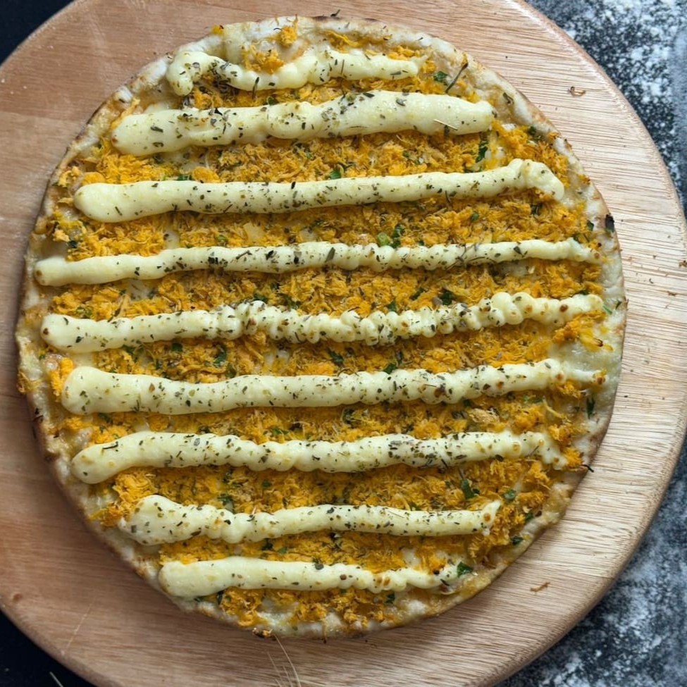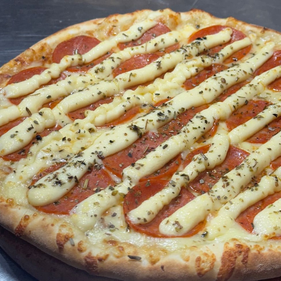 Molho de tomate suave, mussarela derretida e uma combinação irresistível de Catupiry, cheddar e provolone, finalizada com um toque de orégano para um sabor cremoso e delicioso