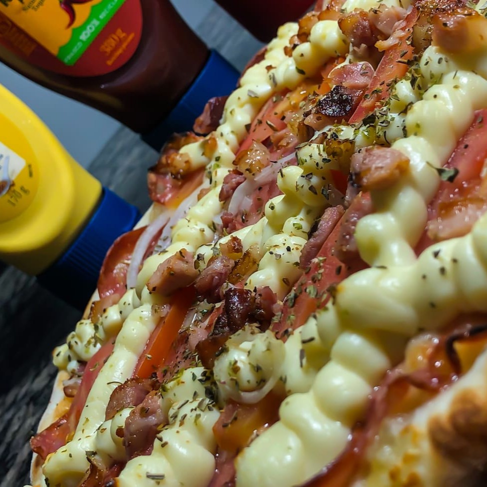 Molho de tomate suave, mussarela derretida, milho verde doce e bacon crocante, com a adição de azeitonas e um toque de orégano para um sabor único e delicioso. Sabor inigualável com molho de tomate suave, mussarela derretida e um toque de orégano. Uma combinação que nunca sai de moda
