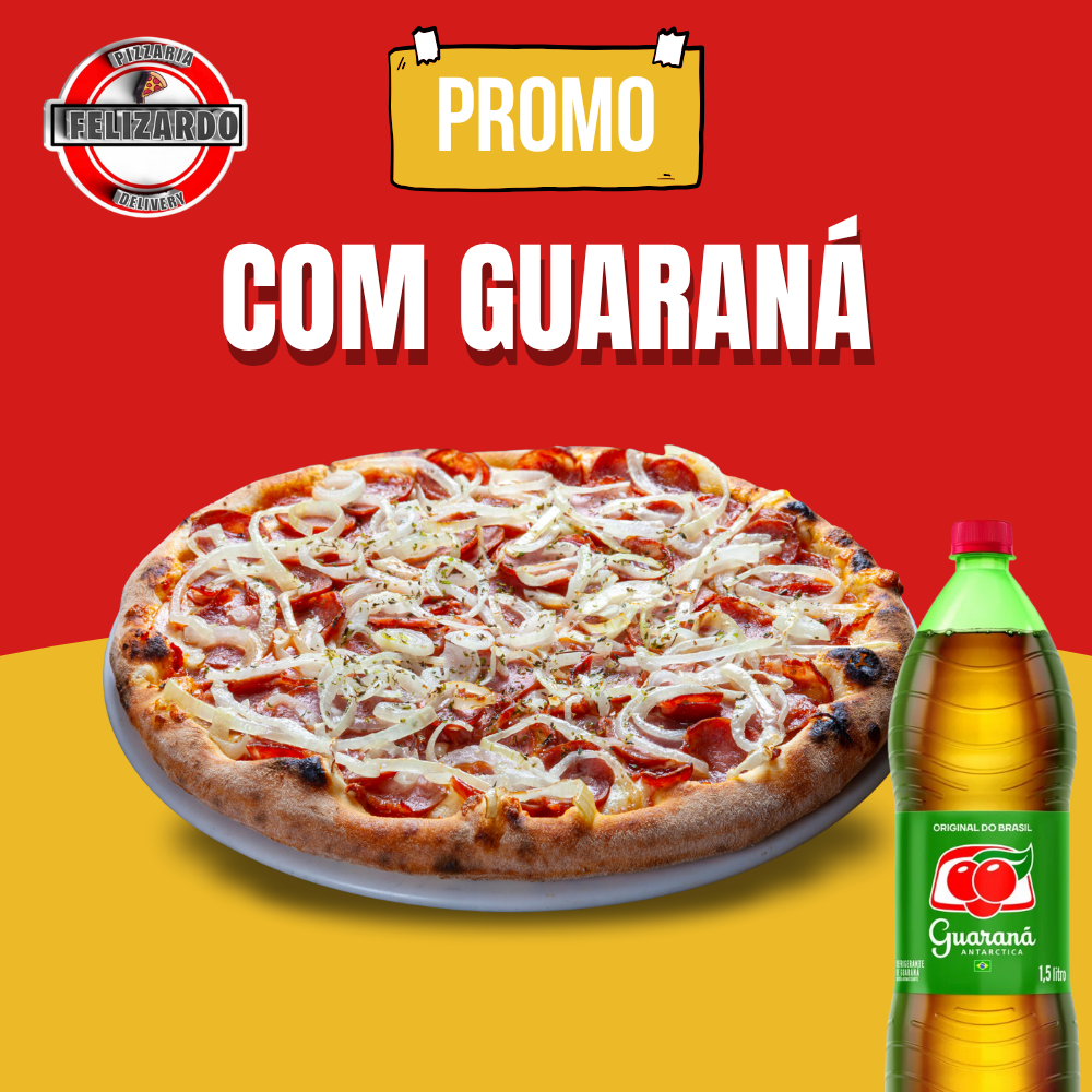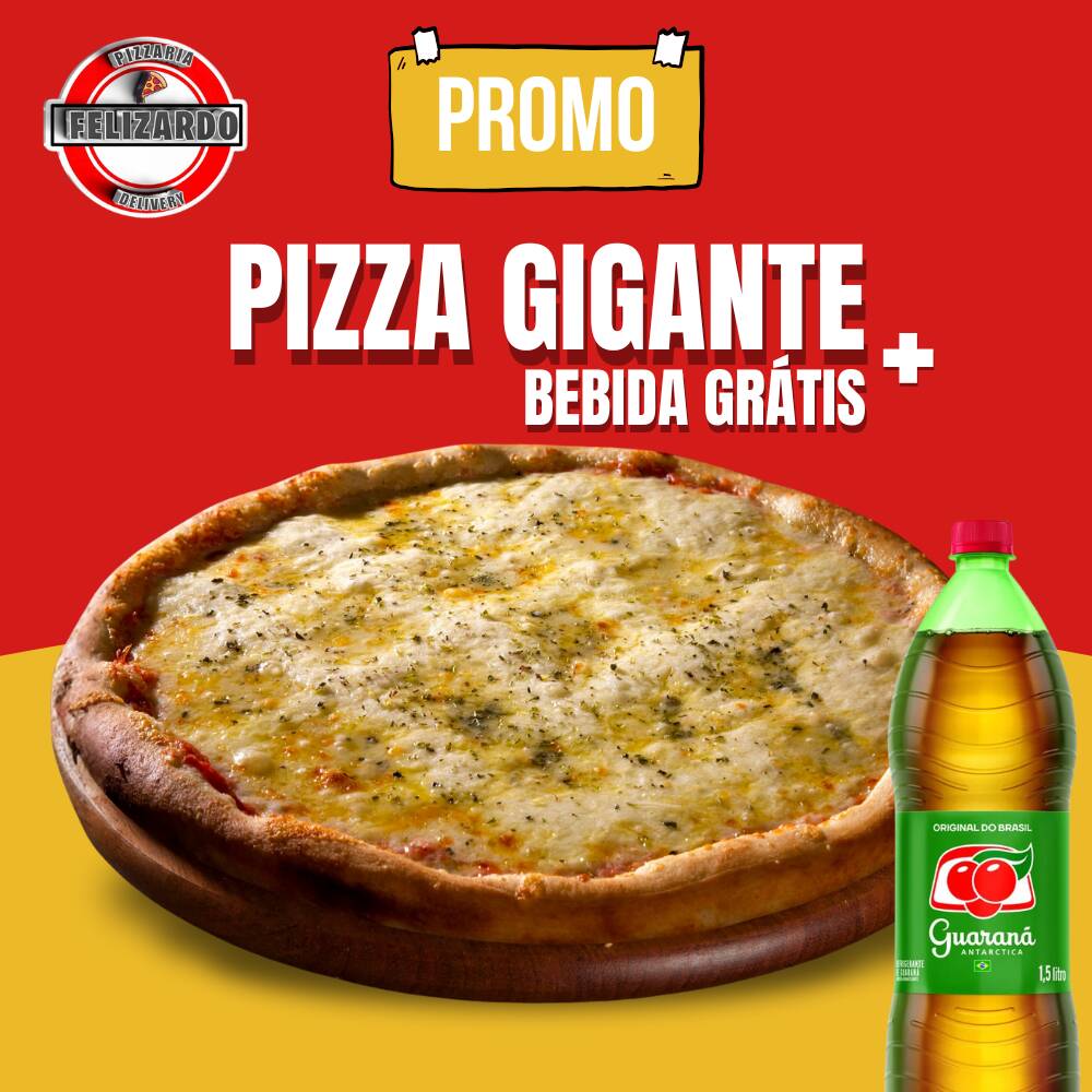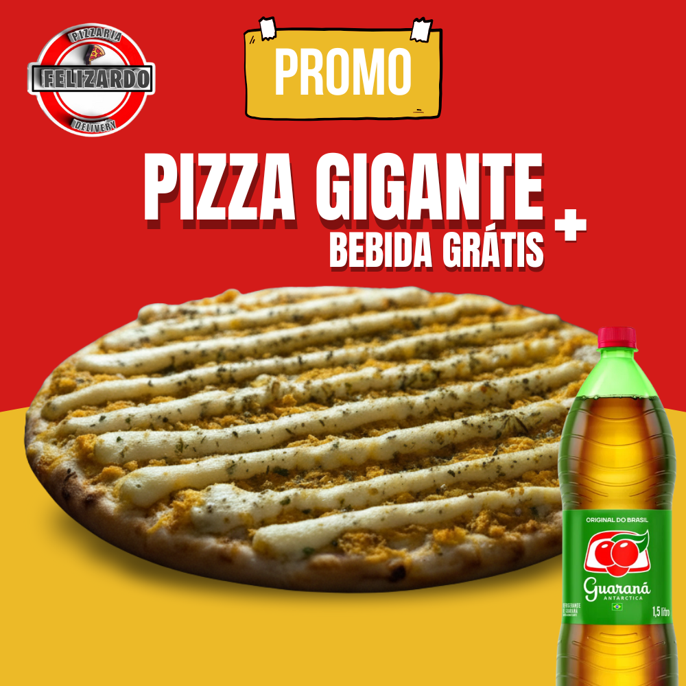 Saboreie uma Pizza Gigante de 45cm, com uma variedade de sabores salgados que vão conquistar seu paladar, acompanhada por um refrigerante gelado para uma experiência completa e refrescante!