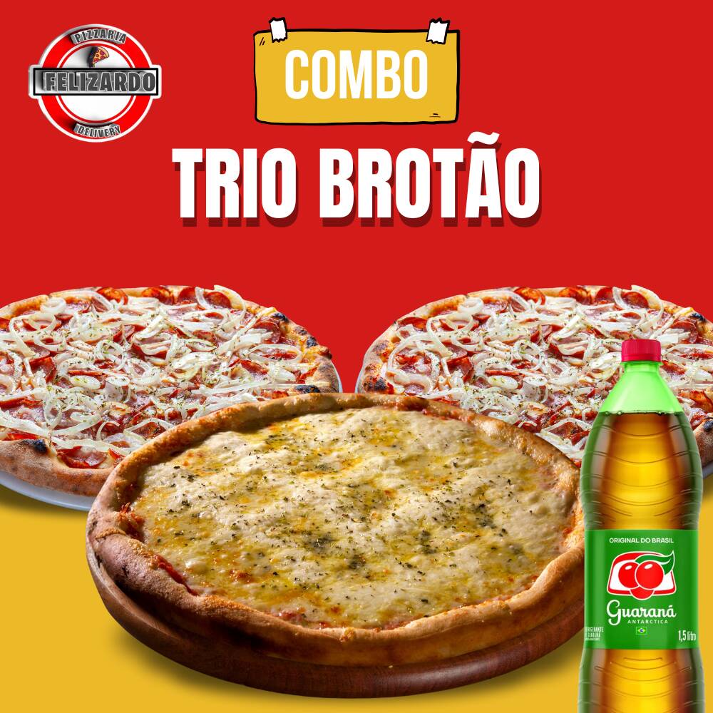 Experimente nosso Combo da Casa: 3 Pizzas Broto de 25cm, perfeitas para compartilhar, e ganhe uma bebida grátis! Uma oferta irresistível para saborear com amigos e familiares.