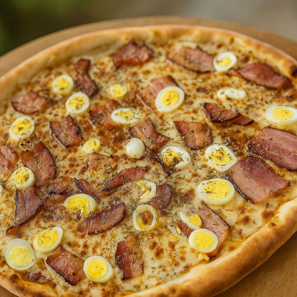 (Equivalente a 8 fatias) Experimente a nossa seleção de pizzas irresistíveis, onde cada fatia é uma explosão de sabor! Feitas com uma massa artesanal, leve e crocante, nossas pizzas são preparadas com os melhores ingredientes e combinações criativas que agradam a todos os paladares. Do clássico ao inovador, cada opção é uma verdadeira obra-prima que traz o melhor da gastronomia à sua mesa. Perfeitas para compartilhar com amigos ou saborear em momentos especiais, nossas pizzas transformam qualquer refeição em uma celebração. Não perca a chance de se deliciar com essa experiência gastronômica!