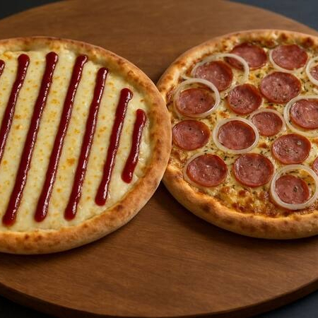 (Equivalente a 4 fatias) Experimente a nossa seleção de pizzas irresistíveis, onde cada fatia é uma explosão de sabor! Feitas com uma massa artesanal, leve e crocante, nossas pizzas são preparadas com os melhores ingredientes e combinações criativas que agradam a todos os paladares. Do clássico ao inovador, cada opção é uma verdadeira obra-prima que traz o melhor da gastronomia à sua mesa. Perfeitas para compartilhar com amigos ou saborear em momentos especiais, nossas pizzas transformam qualquer refeição em uma celebração. Não perca a chance de se deliciar com essa experiência gastronômica!