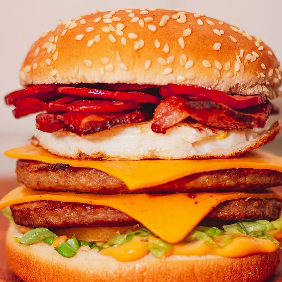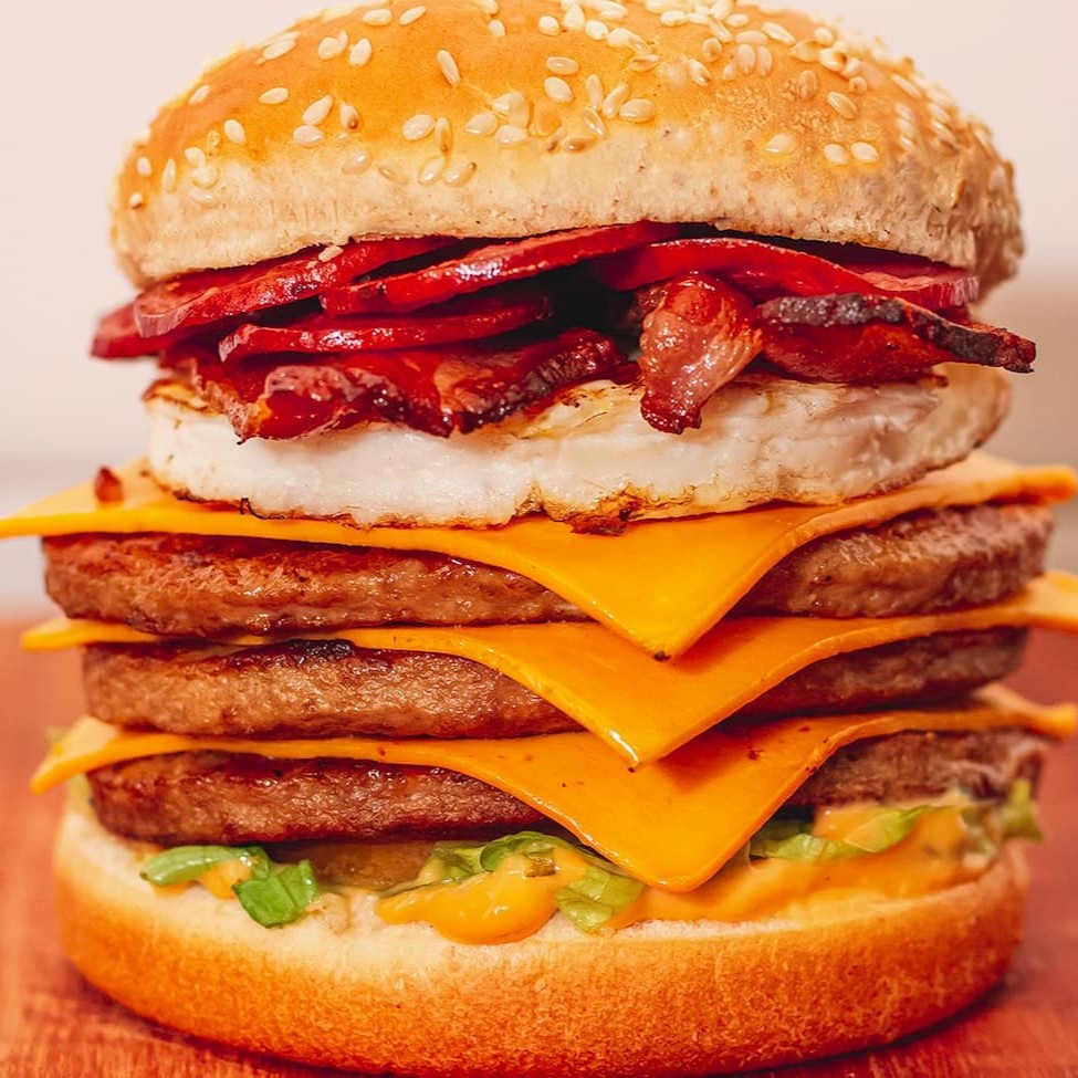 Pão de qualidade fresquinho , 03 carne perfeitamente suculenta , 03 deliciosa fatia de queijo cheddar ,ovo frito, Bacon frito, Calabresa fatiada , alface americana , molho especial.