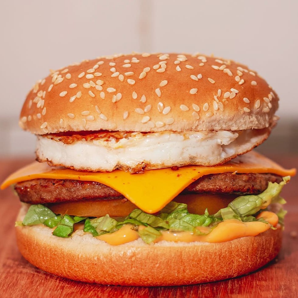 Pão de qualidade fresquinho , 01 carne perfeitamente suculenta , 01 deliciosa fatia de queijo cheddar , 0vo frito , alface americana , molho especial.