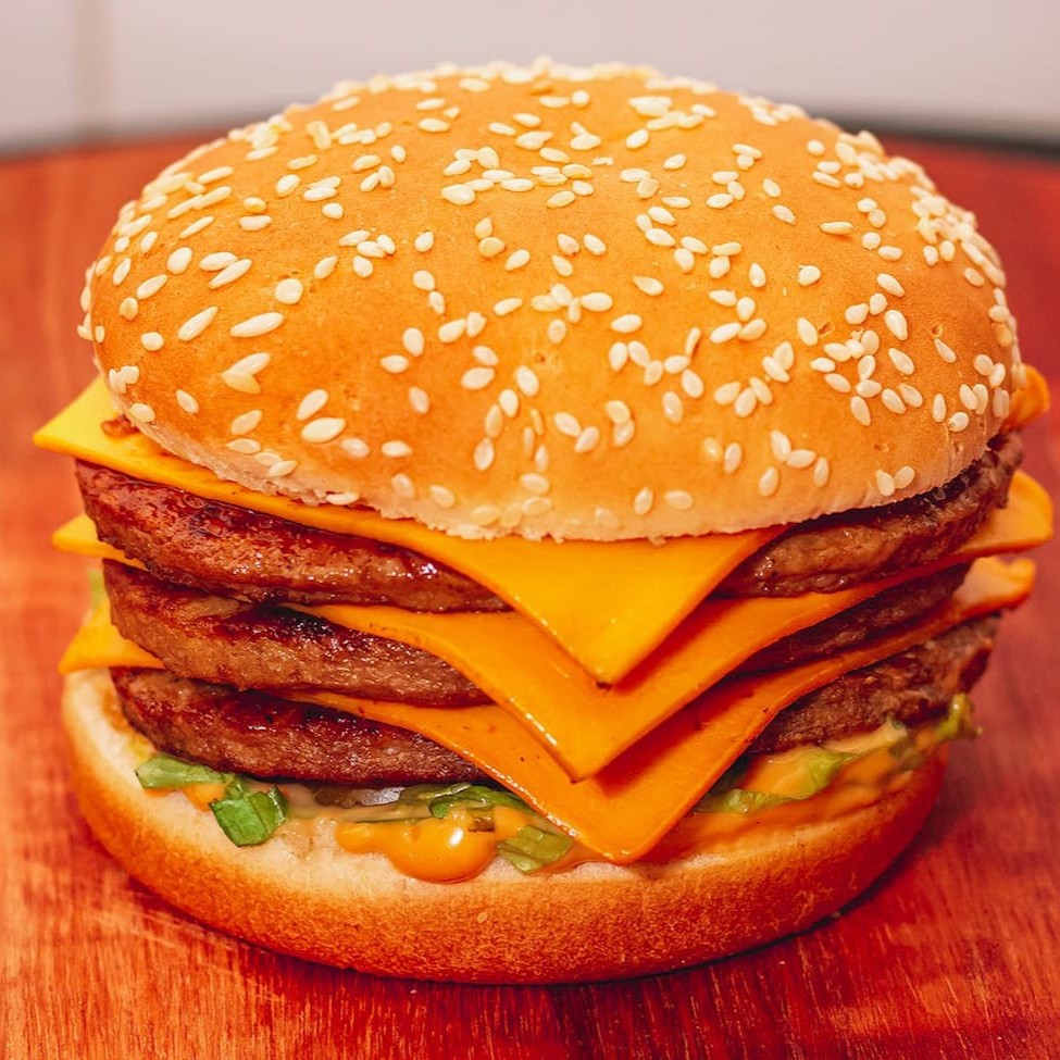 Pão de qualidade fresquinho , 03 carne perfeitamente suculenta , 03 deliciosa fatia de queijo cheddar , alface americana , molho especial.